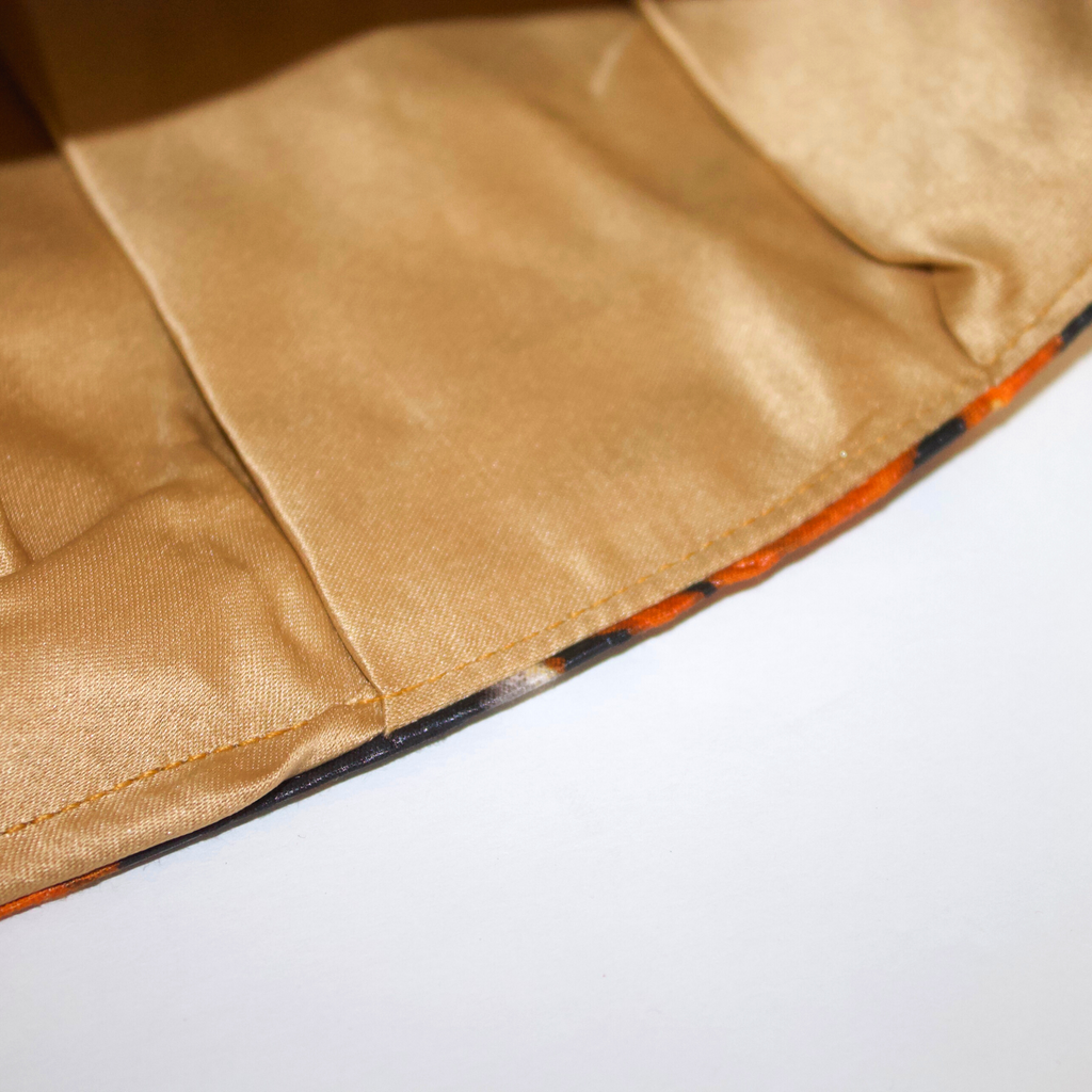 Fun, stylish, comfortable, satin-lined cloth scrub bonnet or chef's hat with fabric ties. Protect your hair while you work. The silky satin lining keeps your hair moisturized while the exterior is made from beautiful, vibrant African Adire fabric.